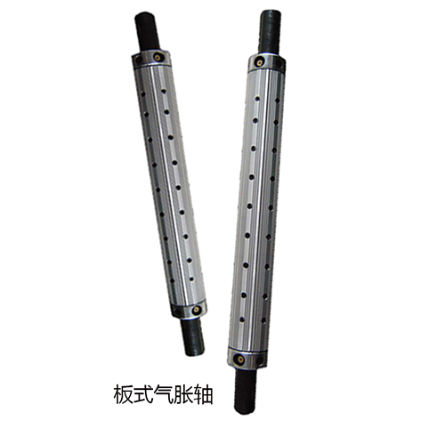 板式氣脹軸的密封效果好,使用壽命長,可拆卸軸頭,維修方便板條式氣脹軸又稱板條式氣壓軸,由氣脹軸(氣漲軸)和長條脹瓦兩部分組成,沒有滑差功能(因其結構脹瓦為通軸一長條,無分節),由充氣壓力大小調節脹瓦扭矩力大小。板條式氣脹軸采用鋁合金板條、膨脹部分是板片、漲縮靈活、支點勻散、受力均勻、通常脹起高度可達4mm至5mm,可適用收卷精密度較高的機械或收卷較輕的物品。